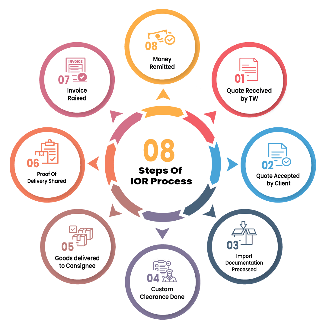 Our IOR service manages every step of the process, from importing, duties & taxes, documentation, distributing, and storing your products to final delivery in your target markets. This comprehensive solution lets you focus on your core business while we handle all logistics, compliance, and regulatory requirements.